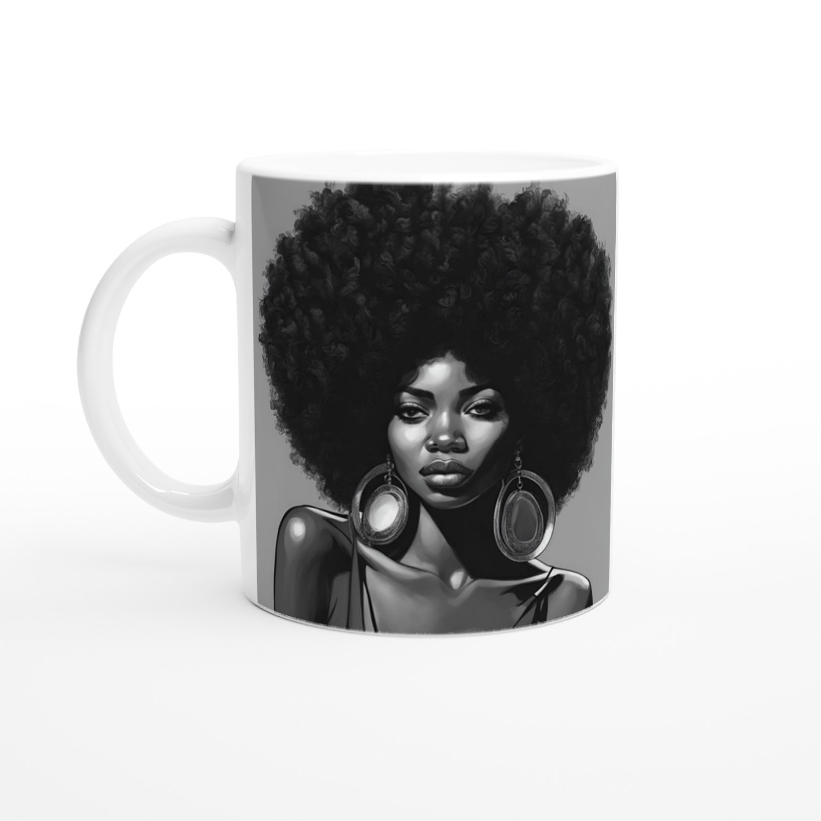 Ce mug met à l’honneur le profil d’une femme noire au bel afro, capturé en noir et blanc pour souligner son élégance intemporelle. Un design chic et minimaliste, qui apporte profondeur et caractère à vos pauses café ou thé.
